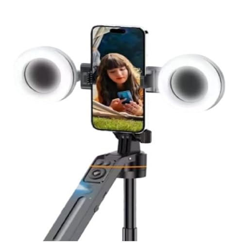 - مصابيح إضاءة ليد مزدوجة قابلة للتعديل: مزودة بمصباحين ليد، ستمكنك من إضاءة محيطك بمستويات سطوع مختلفة، مما يوفر إضاءة ناعمة وجذابة لالتقاط الصور ومقاطع الفيديو. قم بضبط المصابيح لتناسب بيئات الإضاءة المختلفة، مما يضمن حصولك على الإضاءة المثالية دائمًا.