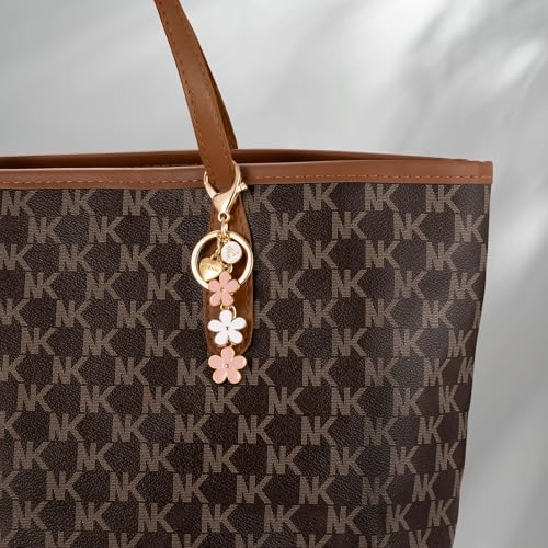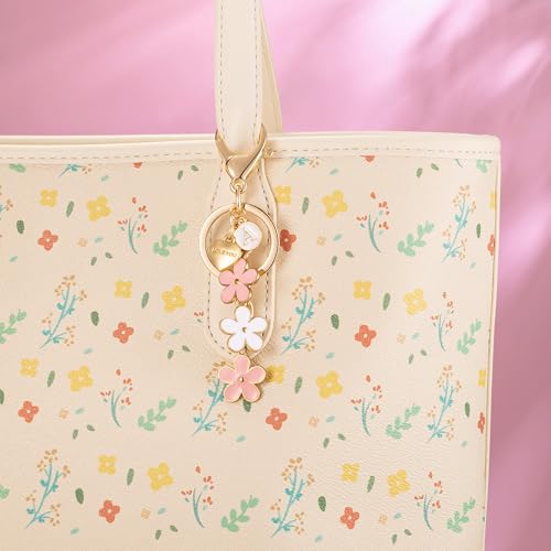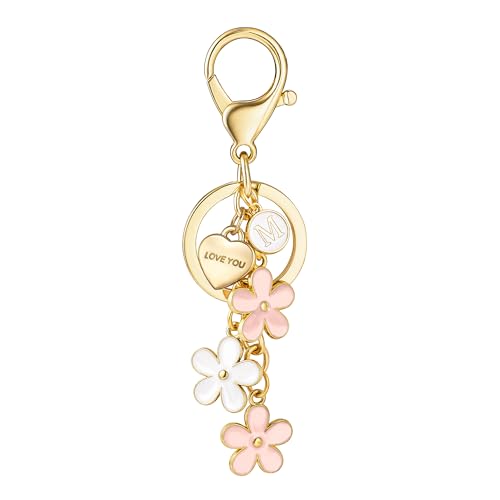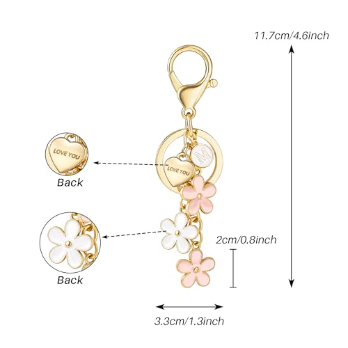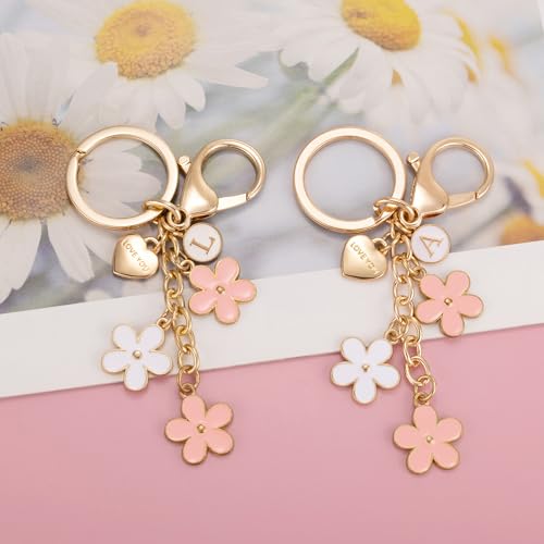SELOVO - سلسلة مفاتيح مزينة بدلايات بتصميم حرف الاسم الأول وزهور وقلب بعبارة "Love You" للنساء من سيلوفو