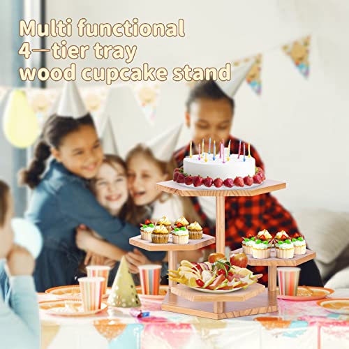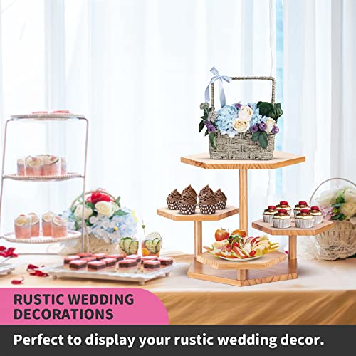 Semohop - حامل كب كيك من 4 طبقات لـ 50 عرض خشبي سداسي الشكل سيموهوب صينية ديكور لبيت المزرعة برج شجرة حلوى لحفلات الشاي المنزلية وحفلات الزفاف استقبال المولود واعياد الميلاد والعطلات