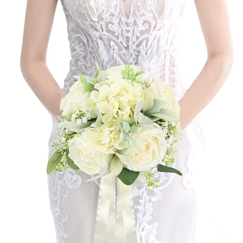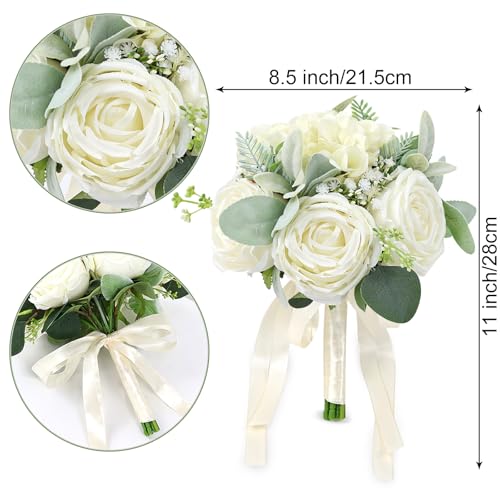 SEMONONIA - باقات زفاف للعروس ووصيفة العروس 8.5 انش، زهور صناعية بلون ابيض عاجي، باقات زفاف للعروس وحفلات الزواج وتزيين الكنيسة