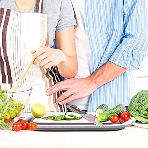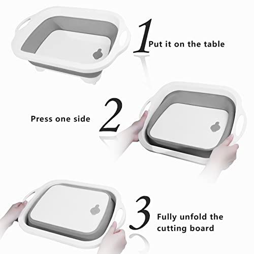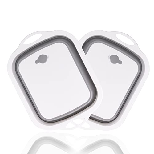 SEMSOIIO - لوح تقطيع قابل للطي من سيمسويو قطعتين، لوح تقطيع قابل للطي مع مصفاة، حوض غسيل خضروات للمطبخ متعدد الوظائف للتخييم (رمادي)