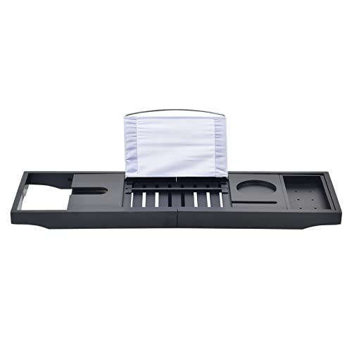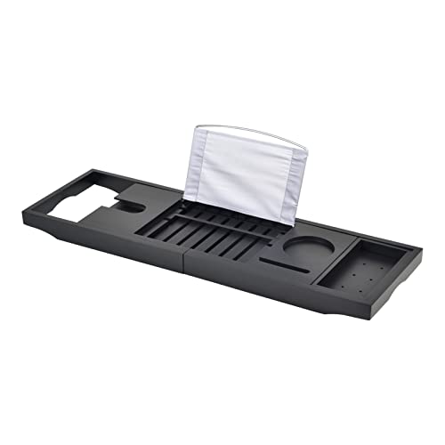 Sen Yi Bao - صينية حوض استحمام، صينية مناسبة لحوض الاستحمام من البامبو، صينية حمام خشبية قابلة للتوسيع، يمكن وضعها في كتاب وحامل مدمج للتابلت والموبايلات الذكية والمشروبات، فكرة رائعة لأحبائك من سين يي باو، أسود