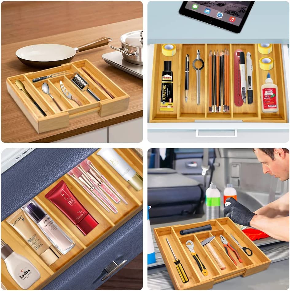 - منظم أدوات مائدة قابل للتوسيع والتعديل: مصمم بـ 4-6 مساحات تخزين، يمكن لمنظم الأدوات الفضية توفير المساحة مع استيعاب العديد من العناصر، وهو قابل للتوسيع من 26 سم إلى 40 سم مع انزلاق سلس.