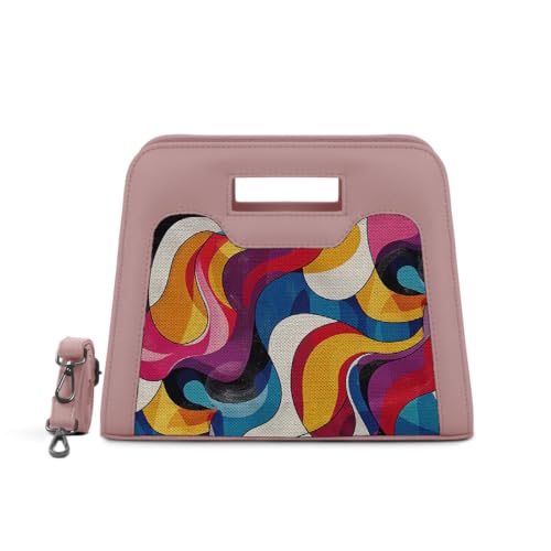 Generic - حقيبة يد من سينكروب باللون الوردي مع طباعة تجريدية ملونة، قماش وجلد صناعي