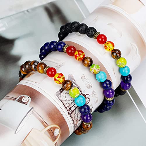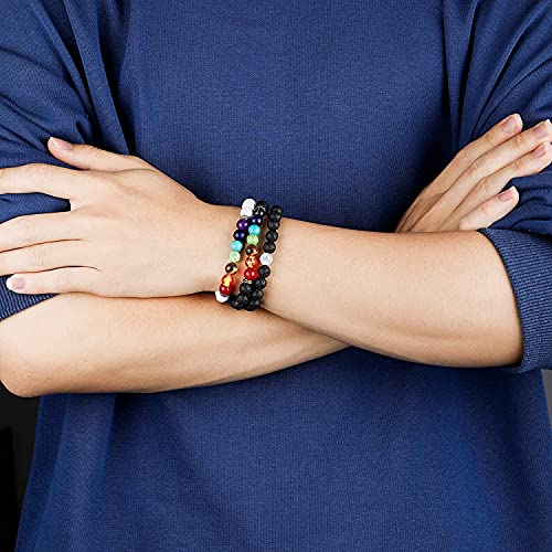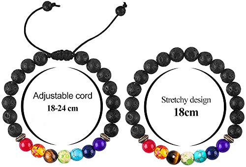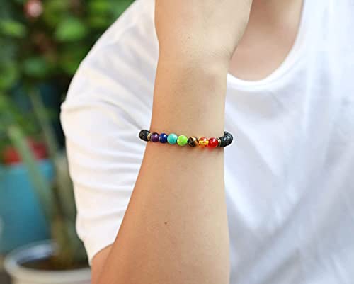 Senidea - سوار من 7 خرزات شاكرا طبيعية واحجار كريمة وحجر اللافا لليوجا والشفاء والريكي والعلاج والطاقة للرجال والنساء سينيديا