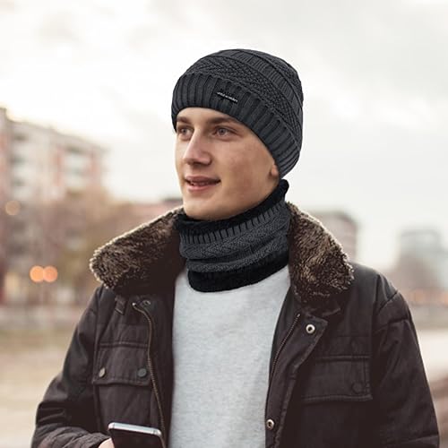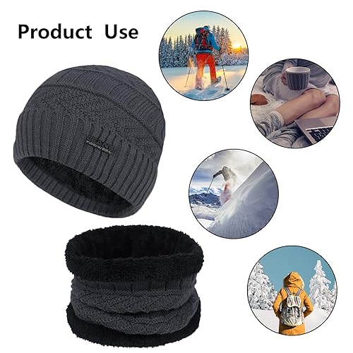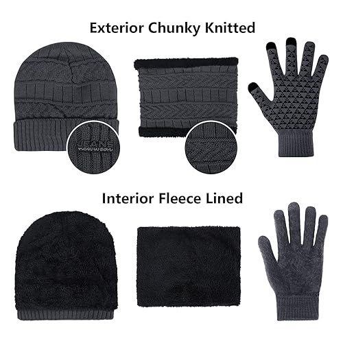 Senker Fashion - مجموعة قبعة صغيرة شتوية مكونة من 3 قطع من سينكر فاشون ووشاح وقفازات تعمل باللمس للرجال والنساء، مجموعة قفازات محبوكة لتدفئة الرقبة، رمادي فاتح، مقاس واحد