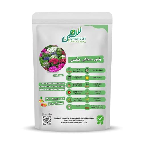 • بذور سنانيير ميكس: مزيج متنوع من بذور زهور السنانيير الملونة بألوان زاهية تشمل الوردي والأحمر والأبيض والأزرق لإضفاء جمال طبيعي على حديقتك