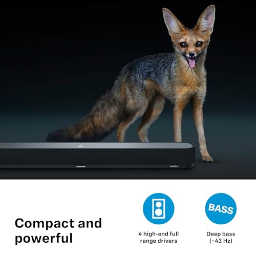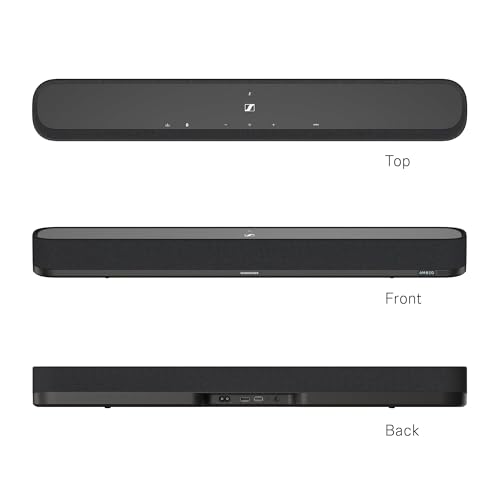 Sennheiser - مكبر صوت ساوند بار صغير امبيو من سنهايزر - ثلاثي الأبعاد غامر للتلفزيون والأفلام والموسيقى - جهاز مع ميزات تكيفية قوية واتصال متعدد واستخدام سهل بلوتوث HDMI