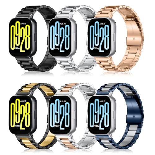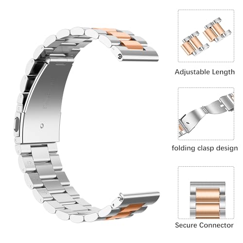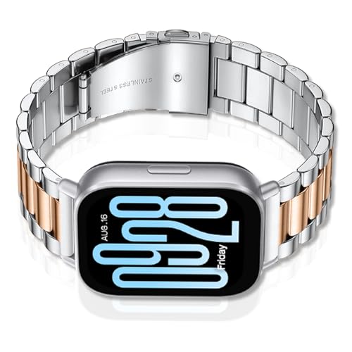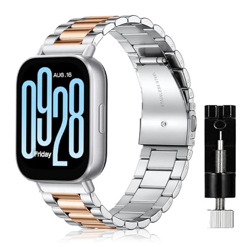 SeNool - سوار معدني بديل بتصميم كاجوال من الفولاذ المقاوم للصدأ لساعة شاومي ريدمي 5 اكتيف/ريدمي ووتش 5 لايت من سينول، لون فضي/ذهبي وردي
