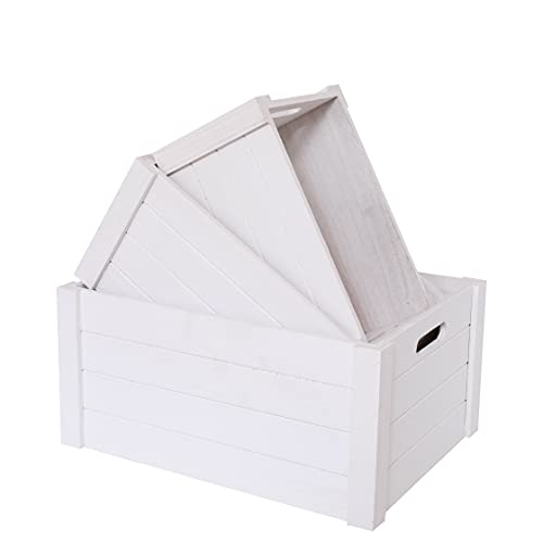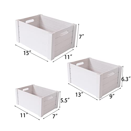 SENRYEE - صناديق خشبية بيضاء عصرية للتخزين، صناديق ديكور ريفية، مجموعة من 3 صناديق تخزين خشبية متداخلة كبيرة جدًا لديكور المنزل، صندوق خشبي صلب طبيعي مصنوع يدويًا، صناديق تخزين خشبية، من سينري
