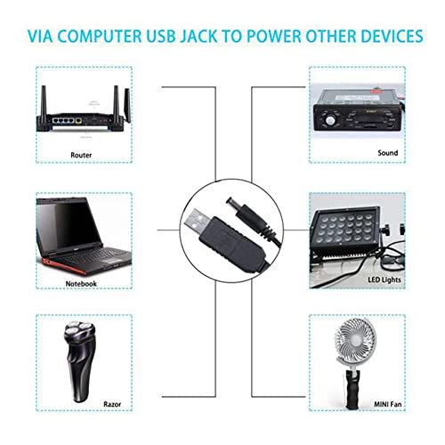 Generic - كابل محول تيار مستمر 5 فولت الى تيار مستمر 12 فولت 2.1 ملم × 5.5 ملم، موصل تيار مستمر ذكر، كابل طاقة USB الى تيار مستمر من سينسليس - 1 م