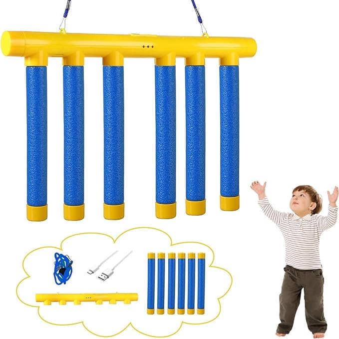 Generic - مجموعة أجراس معلقة حسية، 6 أنابيب فوم زرقاء مع إطار أصفر، لعبة موسيقية داخلية للأطفال