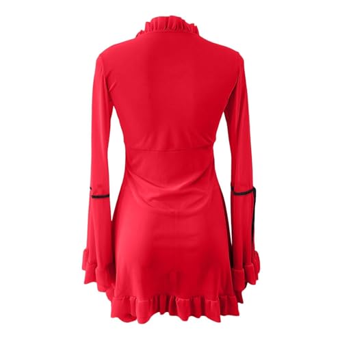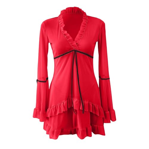 Generic - فستان نوم شبكي مثير - ملابس داخلية مثيرة بقبة V عميقة واكمام قرن وجي سترينج لملابس نوم نسائية واثقة