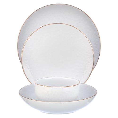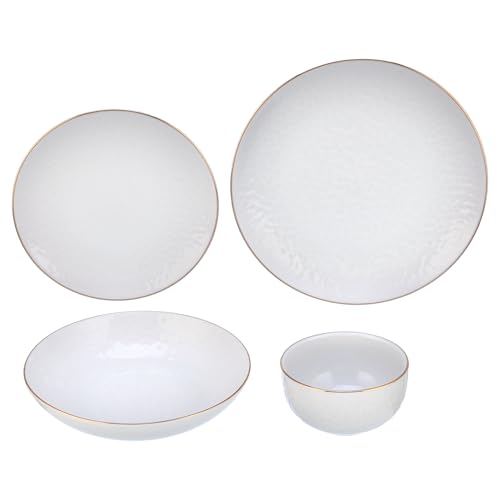 Senzo - طقم عشاء للاستخدام اليومي من سينزو - 24 قطعة - ذهبي - بورسلين
