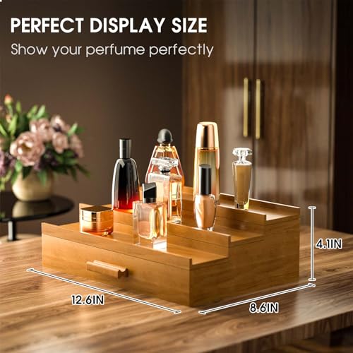 Sephyroth - منظم كولونيا خشبي للرجال من سيفيروث مكون 3 طبقات رف عرض الكولونيا المرتفع مع درج تخزين خشب الجوز