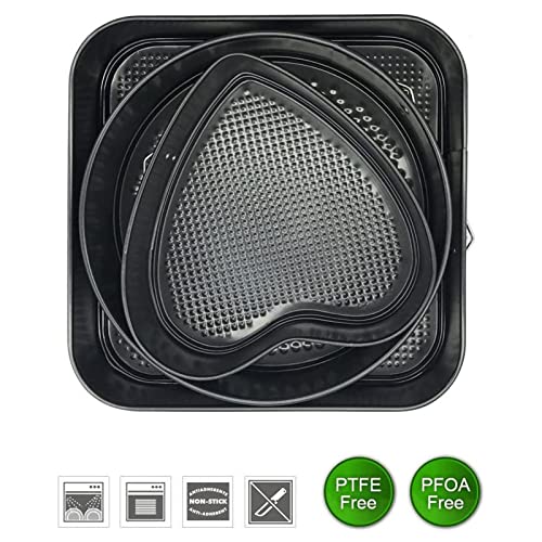 Septpenta - مجموعة أدوات خبز الكيك، صواني مزدوجة الطبقات قابلة للإزالة، صينية مربعة ودائرية وعلى شكل قلب من الصلب الكربوني سهلة الفك، مقاس (24/26/28)، 3 قطع