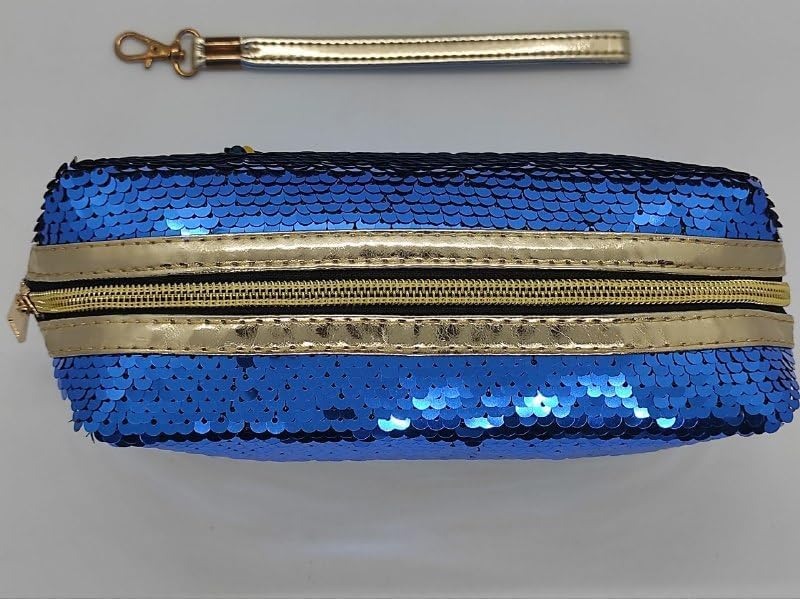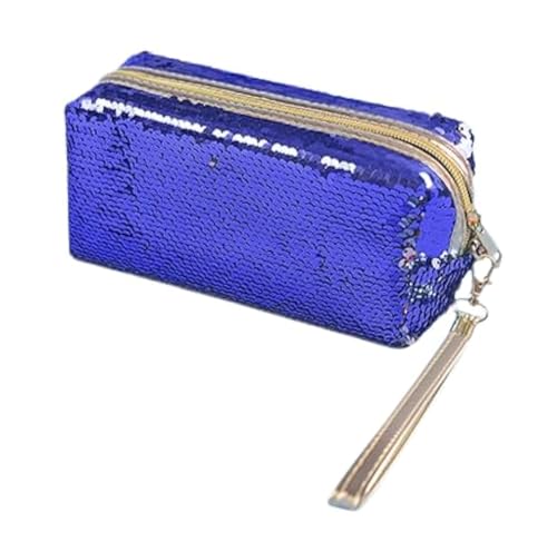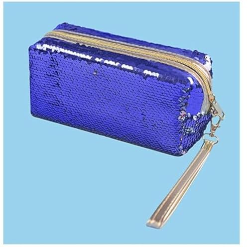Generic - مقلمة ترتر بناتي شنطة أدوات مكتبية متعددة الوظائف أنيقة بسوستة للطلاب البنات بلون أزرق قماش بوليستر
