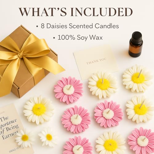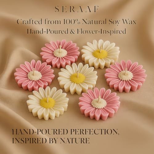 SERAAF - مجموعة شموع معطرة عائمة على شكل زهرة الاقحوان من سيراف، 8 قطع من شمع الصويا للديكور المنزلي، شموع عطرية للهدايا وديكور الغرفة