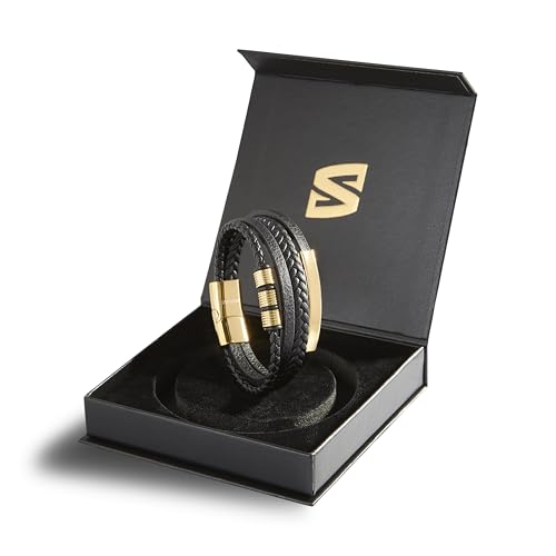 SERASAR - سوار فاخر من الجلد الأسود الطبيعي للرجال من سيراسار | مشبك مغناطيسي من الفولاذ المقاوم للصدأ متوفر بلون أسود وفضي وذهبي | مع صندوق مجوهرات حصري | فكرة رائعة للهدايا