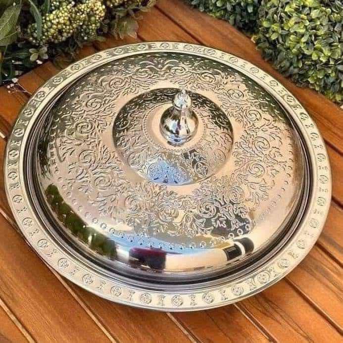 - سرفيس الكبسه والفته والعزومات جددى وغيري فى طريقه تقديمك للاكل سرفيس وطاجن تقديم استانليس بغطا شكله روعهههه مستورد حلو جدا فى تقديم الارز بالخلطه والكبسه والبريانى والفته مقاس كبير ٣٤سم
