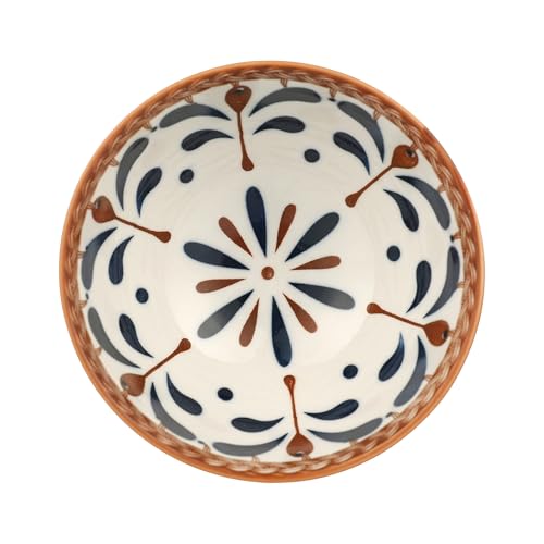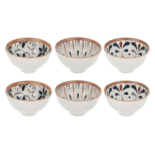 - محتويات المجموعة: مجموعة أوعية تقديم جميلة من البورسلين مكونة من 6 قطع تتميز بتصميمات زهور أنيقة باللون الأزرق الداكن والبني النحاسي مع حافة مضفرة مزخرفة