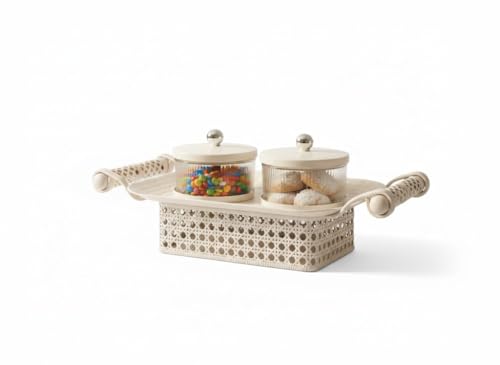 - طقم طبق تقديم بيد مكوّن من قطعتين يساعد على حمل وتقديم الأصناف بسهولة، مما يجعله مناسب للاستخدام أثناء العزومات والتجمعات