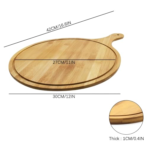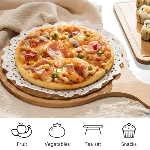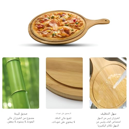 Generic - طبق تقديم - صينية تقديم البيتزا الطبيعية الفاخرة، لوح دائري متعدد الوظائف مع مقبض للخبز وقطع الفواكه والخضروات والجبن