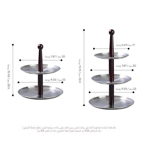 - مصنوع من الستانلس ستيل عالي الجودة مع أعمدة خشبية أنيقة، يوفر هذا الحامل ثباتًا لا مثيل له، وقاعدة غير قابلة للانزلاق، وطبقات قابلة للإزالة بسهولة لتنظيف سريع وترتيب مرن ليناسب أي مناسبة.