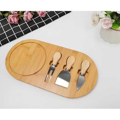 Generic - صينية تقديم بامبو بيضاوية متعدد الاستخدامات مع 3 سكاكين صغيرة للجبن والوجبات الخفيفة والمقبلات في المناسبات المختلفة