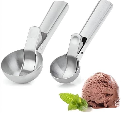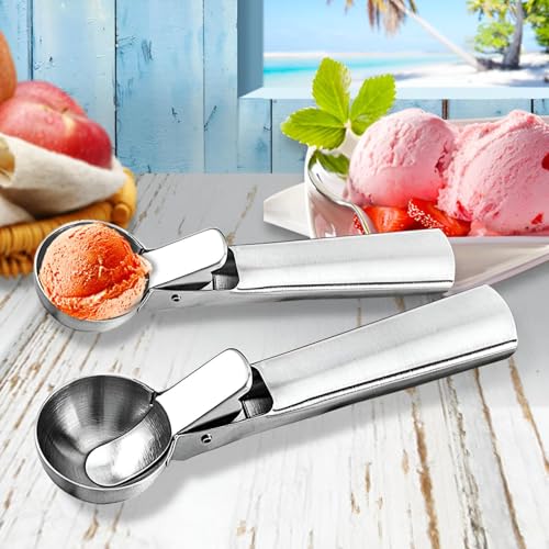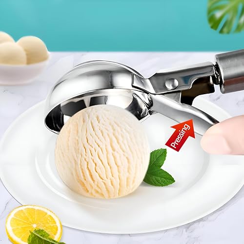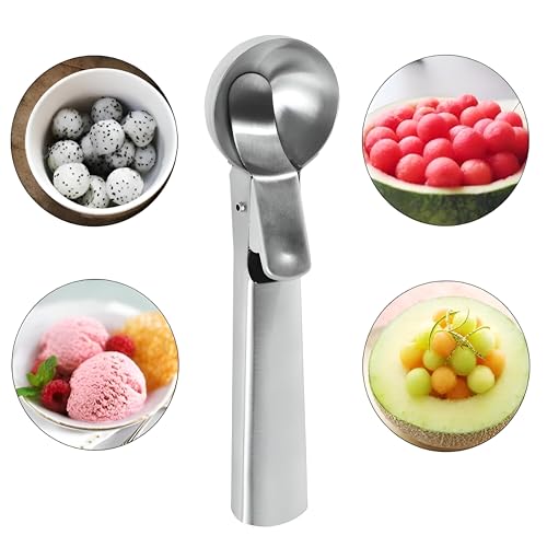 Generic - مغرفة آيس كريم من الفولاذ المقاوم للصدأ مع زناد مريح مصممة لسهولة التعامل وتقديم الدقيق للآيس كريم والفواكه والبطيخ والحلويات الكريمية بشكل أنيق