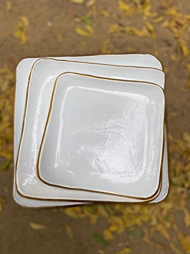 Generic - سيرفيس فخار يدوى مطلى مصنوع بيد فنان وهو يمثل حالة فنية فريدة لفنان تم طلاؤه بلون مناسب وطلاء حافات السيرفيس بماء الذهب ليضفى حالة جمالية راقية (ابيض)