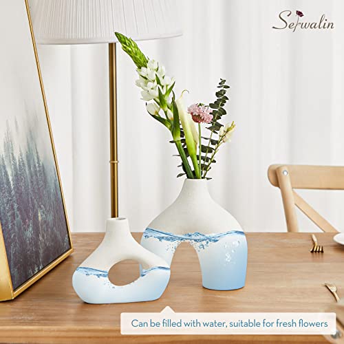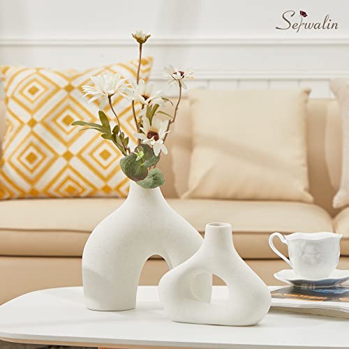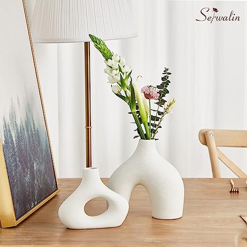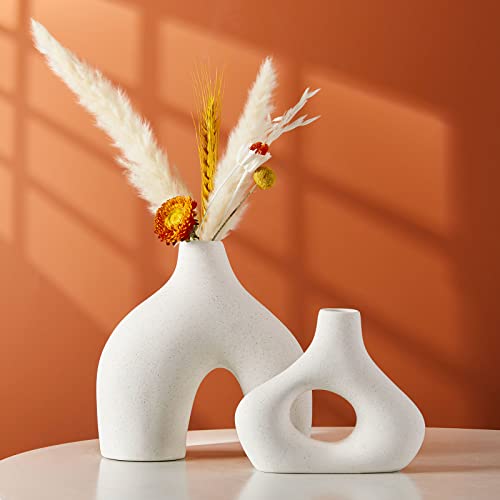 Serwalin - مجموعة فازات سيراميك بيضاء لديكور المنزل العصري من سيروالين، فازات دونات دائرية غير لامعة لعشب البامباس، ديكور بنمط بوهو بسيط نورديك لغرفة المعيشة والزفاف وطاولة العشاء والحفلات والمكتب وغرفة النوم