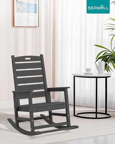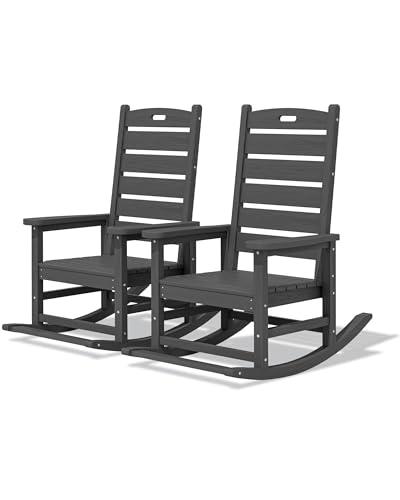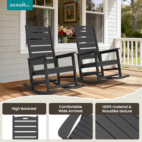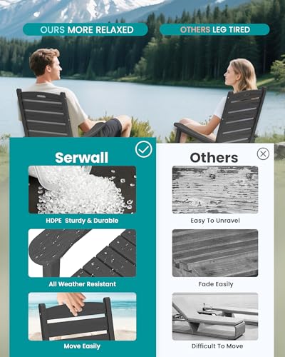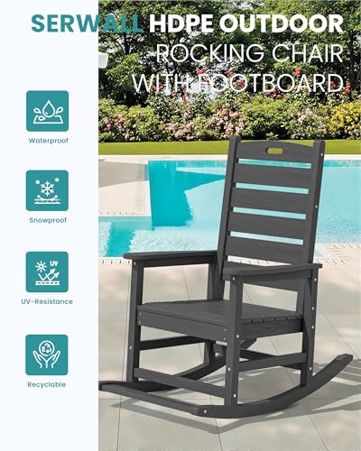 SERWALL - كرسي هزاز للمساحات الخارجية، مقعد كبير مع مسند للقدمين، كراسي بولي ايثيلين عالي الكثافة لكافة الظروف المناخية، يتحمل وزن حتى 158 كجم من سيروال، 2 قطعة، رمادي