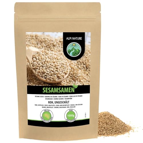 Alpi Nature - سمسم أبيض كامل غير مقشر طبيعي ونقي 100%، بذور سمسم بيضاء غير مقشرة بدون إضافات، 1 كجم