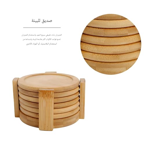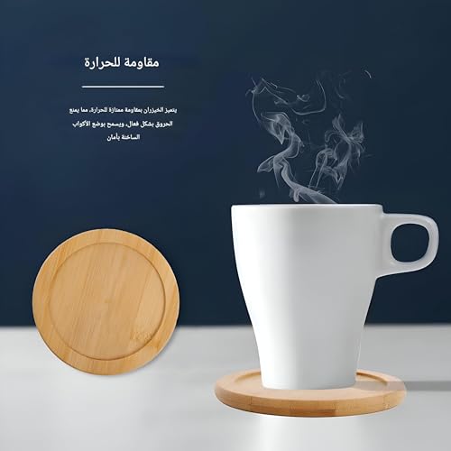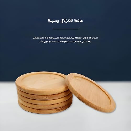 Generic - مجموعة قواعد اكواب خشبية - مجموعة مميزة من 6 قطع خشبية مع حامل، مثالية لحماية الاسطح من حرارة المشروبات ومثالية للهدايا المنزلية