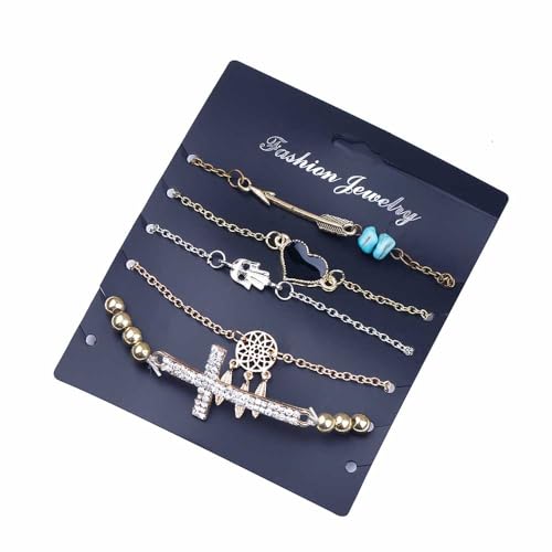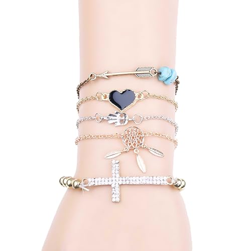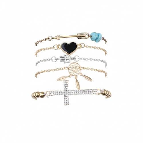 Generic - طقم اساور من خليط معدني من الزنك بتصميم كلاسيكي على شكل قلب من خليط معدني من الزنك لعيد الحب وعيد الام - 5 قطع