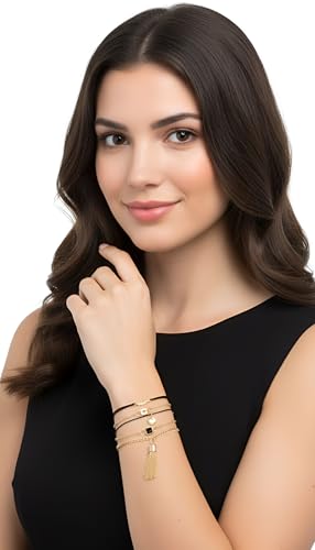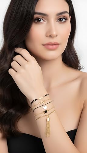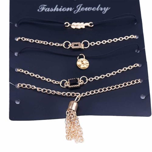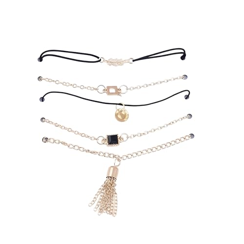 Generic - طقم اساور بيجوكس بوهيميا اسود هدية للنساء في يوم الموضة والزوجة والحبيب وافراد العائلة والأخت الصالحة والصديقة - خليط معدني من الزنك 5 قطع