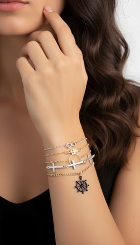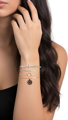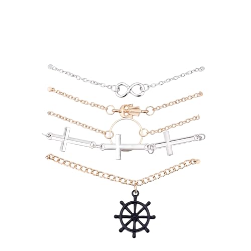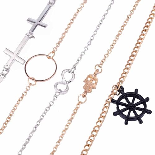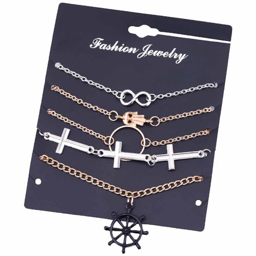 Generic - طقم اساور مختلطة بنمط بوهيمي عصري للزوجة والحبيب وافراد العائلة والأخت الصالحة والأخت الصالحة والصديقة وعيد الحب - خليط معدني من الزنك 5 قطع