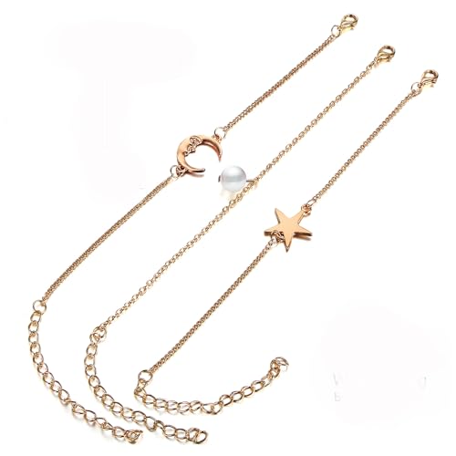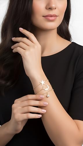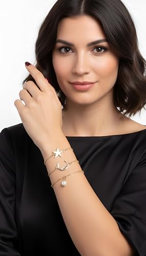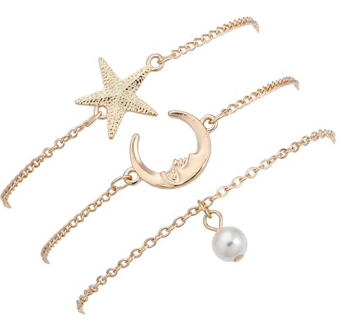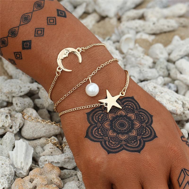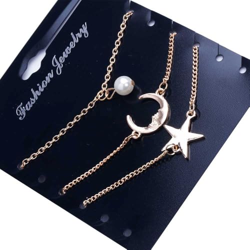 Generic - طقم اساور بتصميم نجمة وقمر وبوهيميا للزوجة والحبيب وافراد العائلة والاخت الصالحة والصديقة - خليط معدني من الزنك 3 قطع