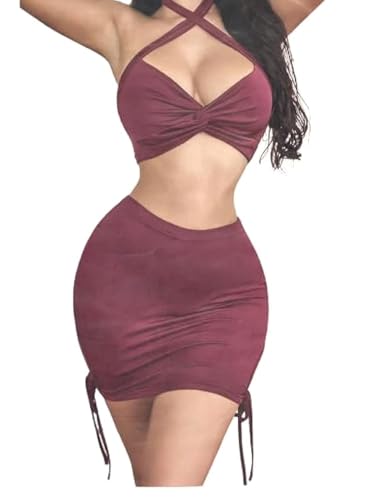 Generic - طقم للنساء، جيبة قصيرة من القطن وبلوزة برقبة على شكل حرف X