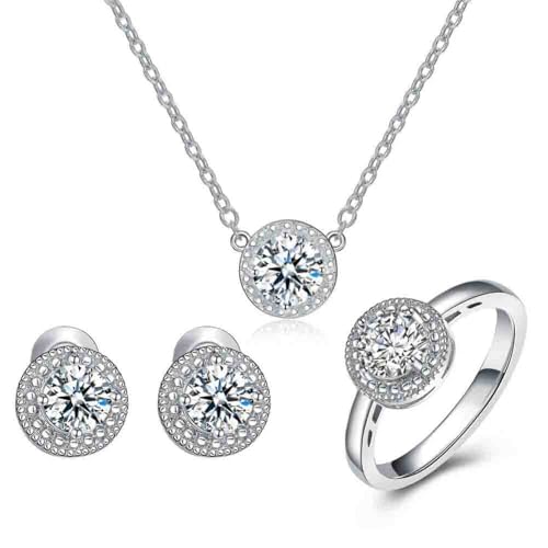 Generic - طقم مجوهرات سوليتير لحفلات الزفاف للنساء - مطلي بالذهب والابيض