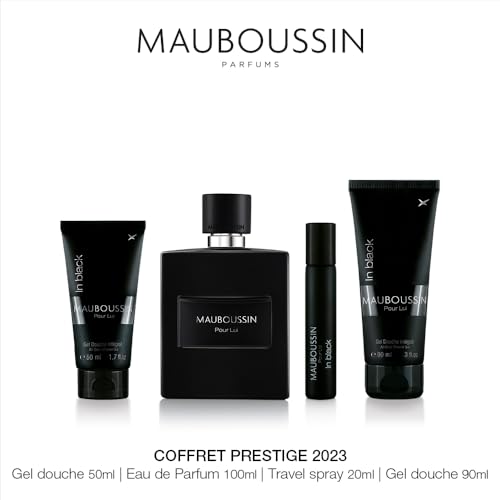 Mauboussin - مجموعة عطر بور لوي ان بلاك برستيج او دو بارفان 100 مل + شاور جل 90 مل + شاور جل 50 مل + عطر او دو بارفان 20 مل من ماوبوسين