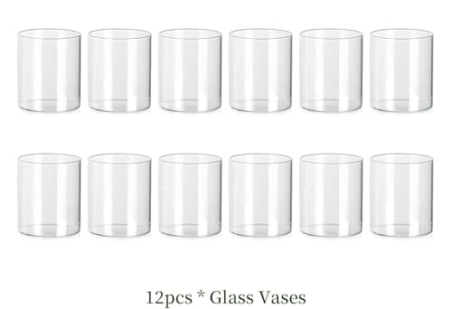 Generic - مجموعة من 12 مزهريات زجاجية اسطوانية بطول 10 سم - متعددة الاستخدامات: شموع عمودية أو حوامل شموع عائمة أو مزهرية زهور - مثالية للقطع المركزية لحفلات الزفاف (شفاف)