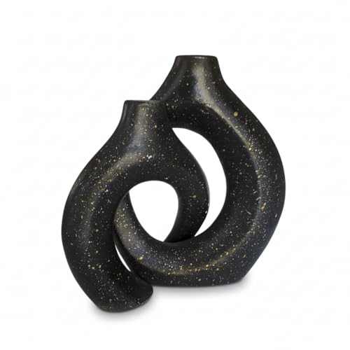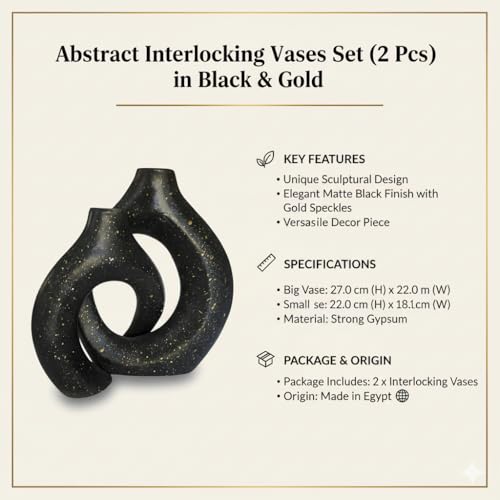 Generic - طقم فازات متداخلة بتصميم تجريدي - ديكور منزلي منحوت وحديث، قطع فنية يدوية من الجبس لعرضها في غرفة المعيشة، المكتب، أو المدخل، باللونين الأسود والذهبي، 2 قطعة