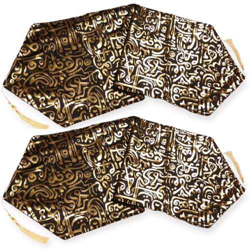 Generic - مفرش طاولة بتصميم عربي لشهر رمضان، مقاس 1.45 متر× 47 سم، لون أسود/ذهبي، طقم من قطعتين