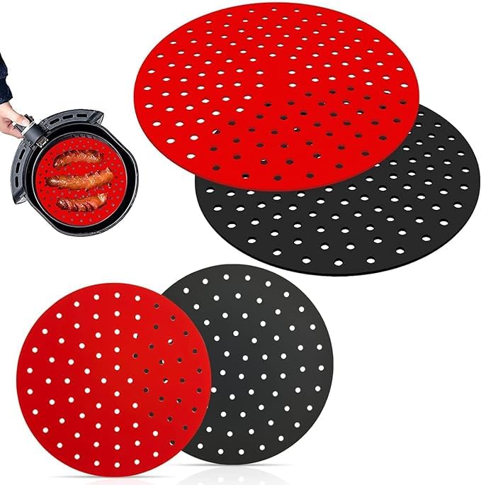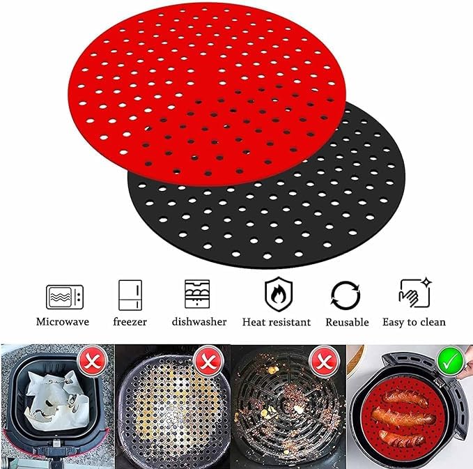 Generic - حصيرة سلة مقلاة هوائية من مادة متينة وآمنة غذائيا، سلة وعاء سيليكون محمولة وشاملة، قابلة لإعادة الاستخدام وغير لاصقة وسهلة التنظيف، خالية من BPA، مجموعة مكونة من قطعتين (دائرية)