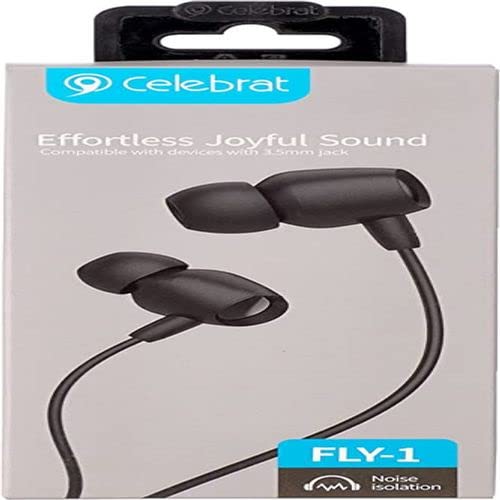 Generic - مجموعة سماعات أذن ستيريو باس فلاي-1 بسلك مع ميكروفون من سليبريت، قطعتين، لون أسود