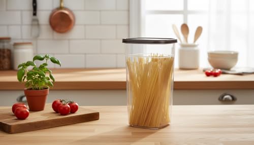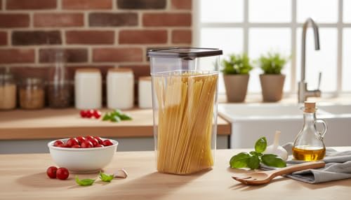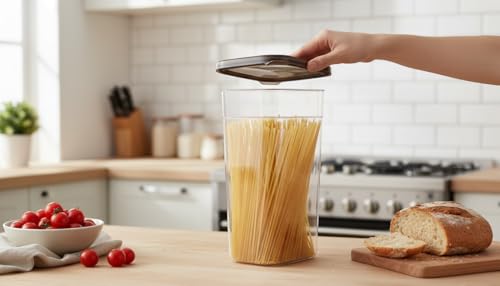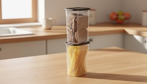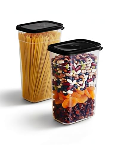 - 🔹 طقم 2 علبة تخزين بلاستيك شفافة: علب مطبخ طويلة وعملية لتخزين العدس، الأرز، الفاصوليا، السكر، المكرونة، الدقيق والشوفان – تحفظ المكونات طازجة لفترات طويلة.