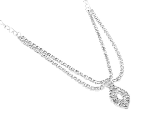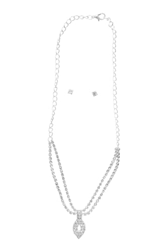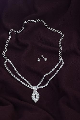 Generic - طقم 2 قطعة طوق رقبة ضيق و أقراط أذن بريمة بتصميم لطيف مرصع كريستال لامع مقاس قابل للتعديل نسائي ، فضي TON-A-1120