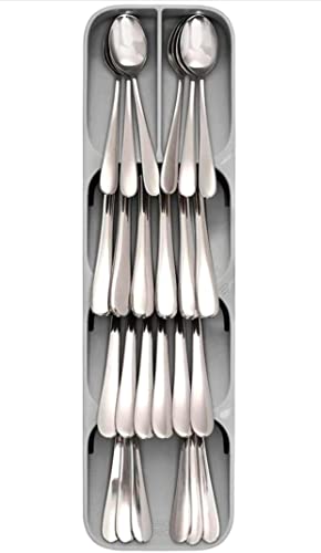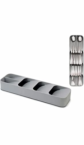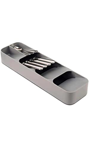 Spaceshoop - مجموعة صندوق تخزين منظم لادوات المائدة في الادراج من دراور ستور تتكون 2 درج المطبخ لتخزين وفصل ادوات تناول الطعام حامل لتنظيم الفضية السكاكين والشوك والمعالق لونها رمادي